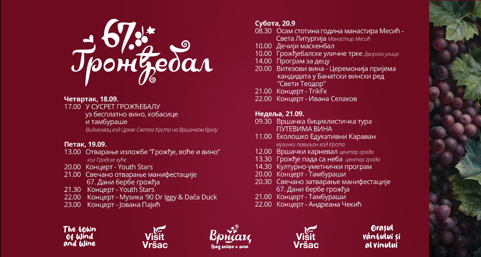 Dani berbe grožđa Vršac, Grožđebal Vršac, od 18.09. do 21.09.2025 godine od 10h.