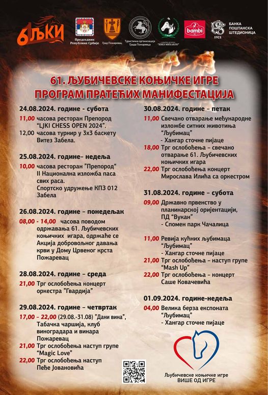PROGRAM LJUBIČEVSKE KONJIČKE IGRE POŽAREVAC 2024: