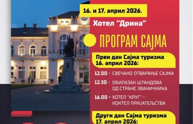 Sajam turizma Bijeljina 2026, četvrtak, 16.04, i petak, 17.04.2026 godine, Hotel Drina Bijeljina u 10h.