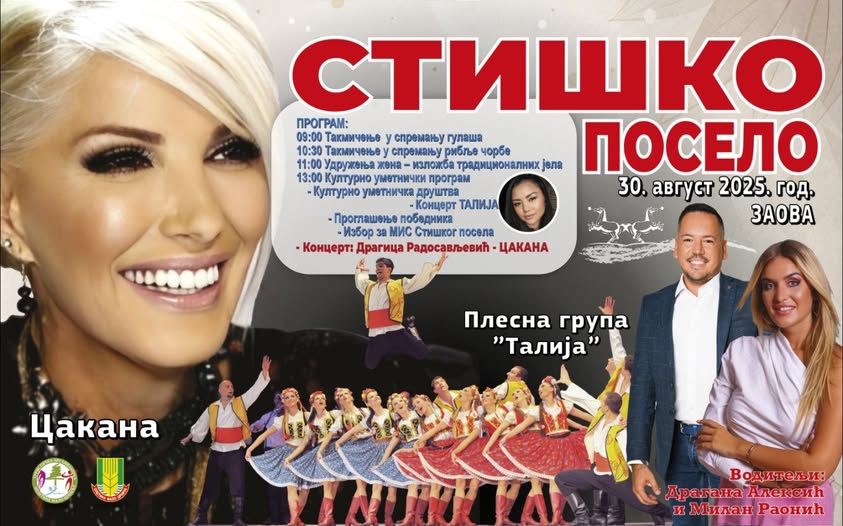 Stiško poselo Zaova Malo Crniće, subota, 30.08.2025 godine u 9h.