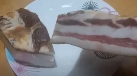 Domaću sušenu svinjsku slaninu tanko iseći i servirati u drvenom ovalu.